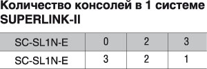 - Количество одновременно включаемых в систему SUPERLINK-II консолей SC-SL1N-E и SC-SL1N-E показано в таблице внизу.